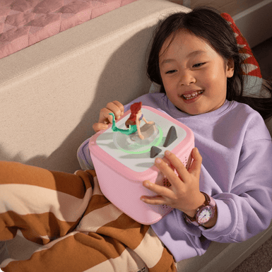 Intuitive controls mean kids can tap, tilt or squeeze to navigate their way through their favorite songs, stories, games and more. No screens or menus in sight.
